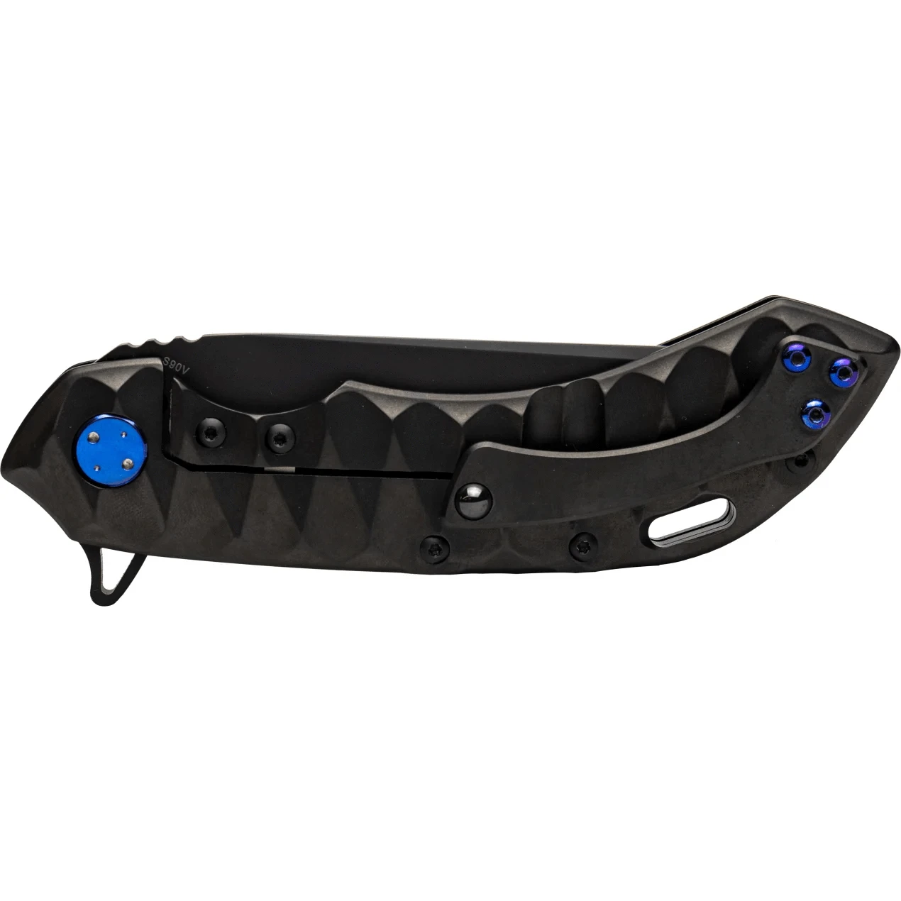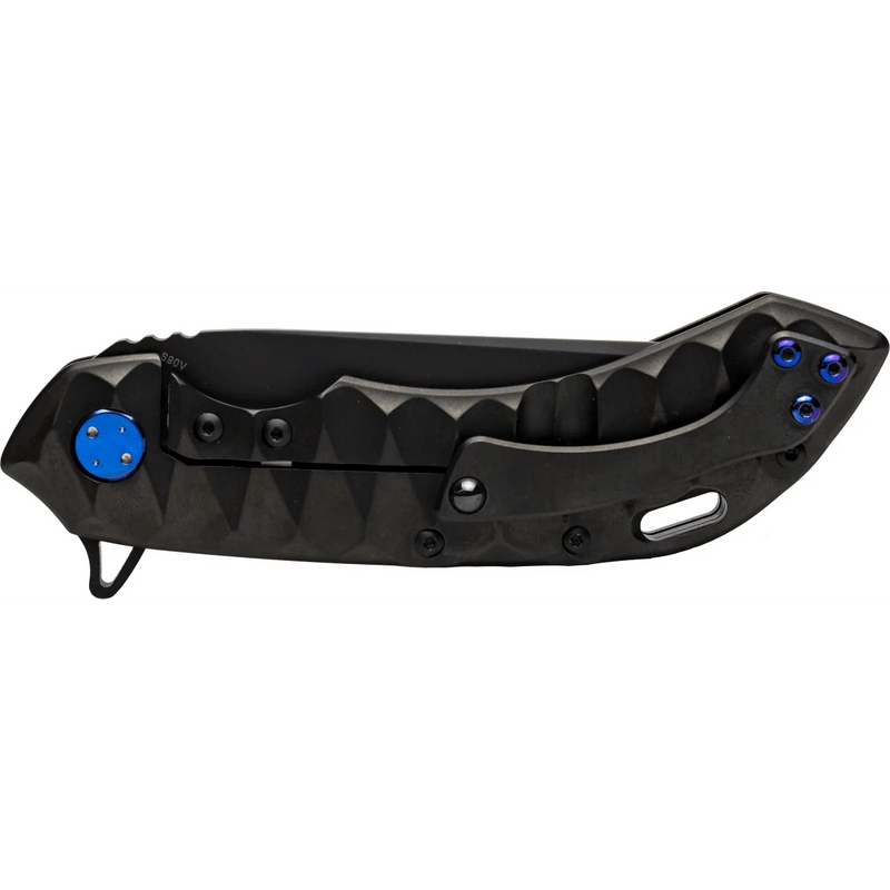 - Features: Scalloped Weight Reduction, Blue Ti Pivot & Screws, Blue Ti Floating Back Spacer, Fast Flipper Deployment, Tactical PVD Finish