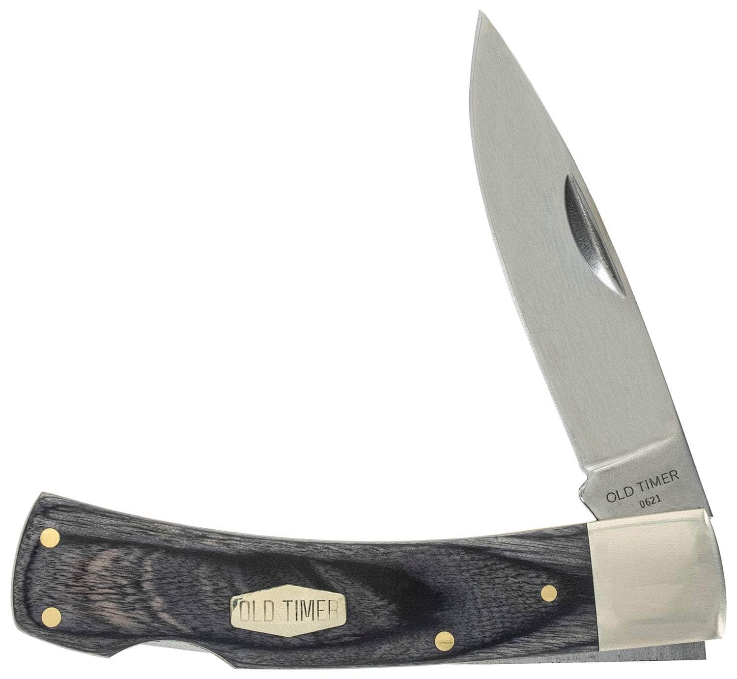Old Timer 1135989 Heritage Series Bruin 50th Anniversary 2.80" Drop Point Plain D2 Steel Blade 3.70" Black Wood Laminate Handle