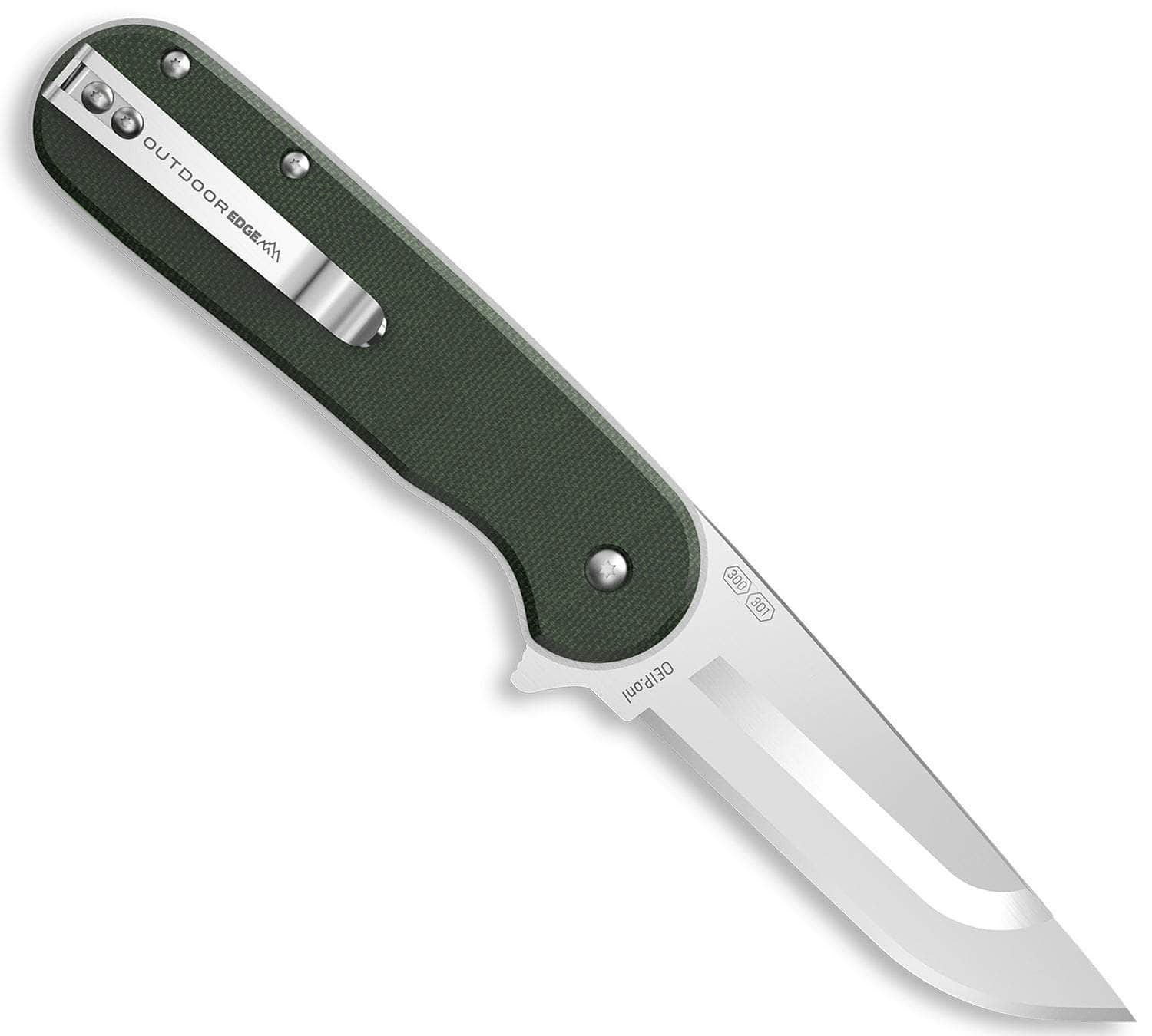 Outdoor Edge VX330B Razor VX3 EDC 3" Folding Drop Point Plain Satin 420J2 SS Blade, Green Micarta Handle