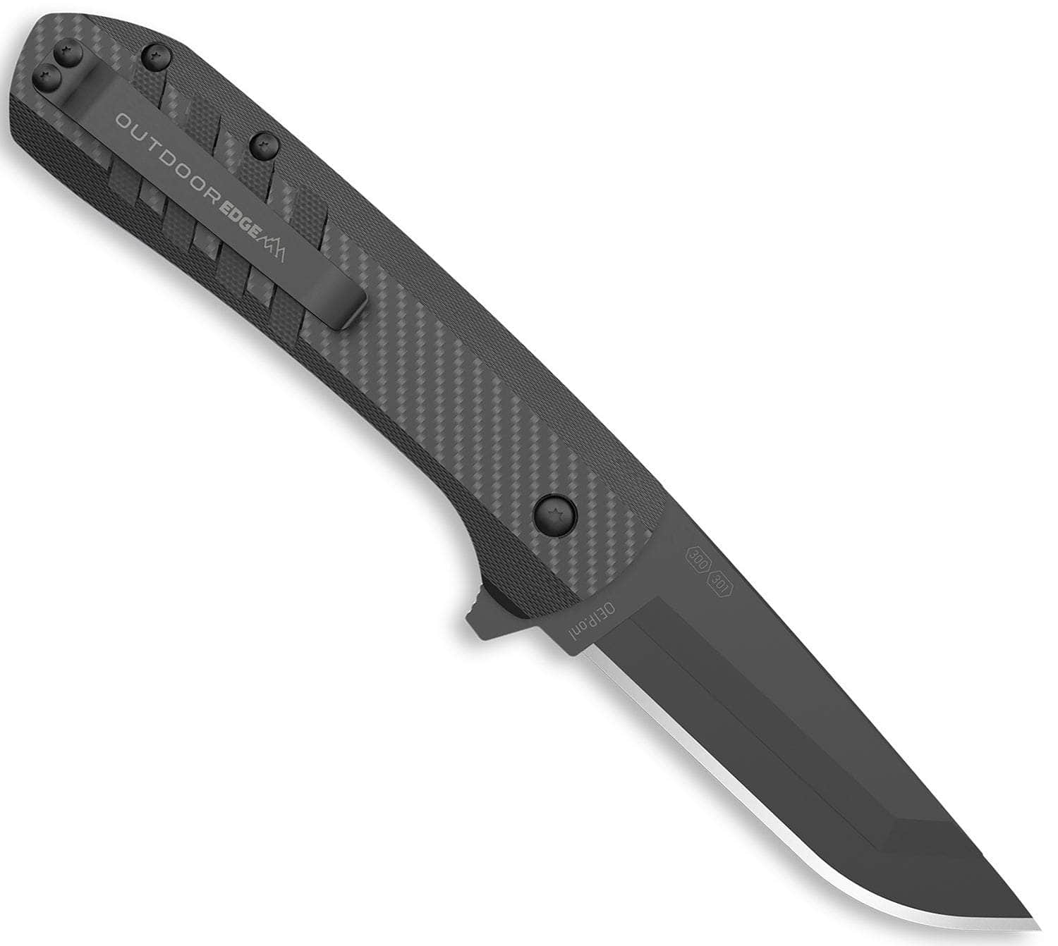 Outdoor Edge VX430A Razor VX4 EDC 3" Folding Drop Point Plain Black Oxide 420J2 SS Blade, Black Textured Carbon Fiber/G10 Handle