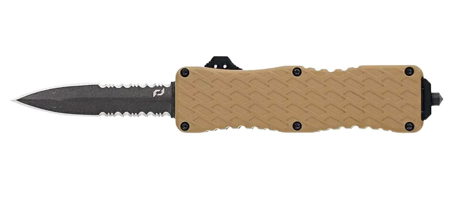 THIS ITEM IS QUALIFIED FOR FREE ENGRAVING. WE WILL REACH OUT VIS EMAIL TO GET YOUR CUSTOM INSCRIPTION TEXT. Schrade 1159305 Uproar Automatic 3" OTF Dagger Part Serrated Black Oxide D2 Steel Blade, Flat Dark Earth Textured Aluminum Handle