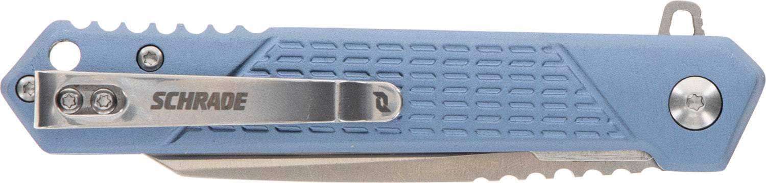 Schrade 1159320 Inert EDC 3.25" Folding Wharncliffe Part Serrated Satin AUS-10A SS Blade, 4.25" Blue Aluminum Handle