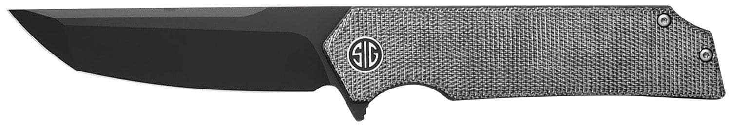 Sig Sauer Knives TS8BB Tsuru 3.30" Folding Tanto Plain Black PVD 154CM SS Blade, 4.20" Salt & Pepper Micarta Handle