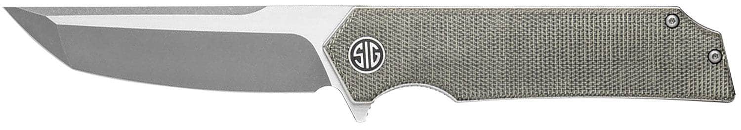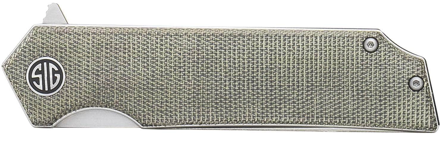 Sig Sauer Knives TS8SG Tsuru 3.30" Folding Tanto Plain Satin 154CM SS Blade, 4.20" Green Canvas Micarta Handle