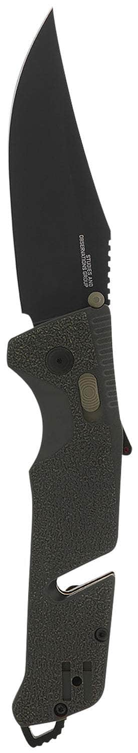 S.O.G SOG11120341 Trident AT 3.70" Folding Clip Point Plain Black TiNi Cryo D2 Steel Blade/Olive Drab w/FDE Accents GRN Handle Features Line Cutter/Glass Breaker