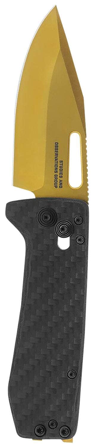 S.O.G SOG-12-63-02 Ultra XR 2.80" Folding Clip Point Plain Gold TiNi Cryo S35NV Steel Blade/Black Textured Carbon Fiber Handle Includes Pocket Clip