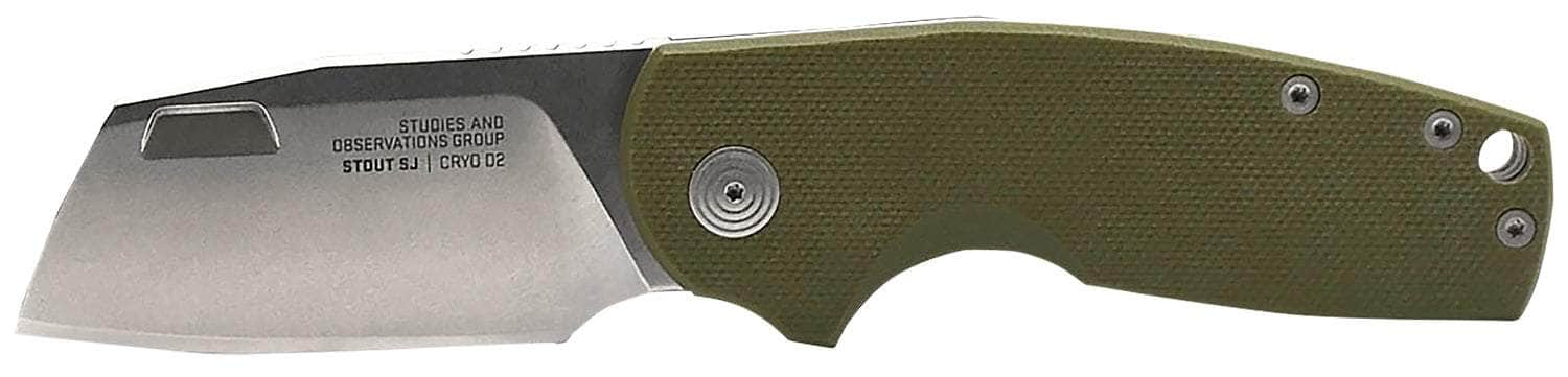 S.O.G SOG16030657 Stout SJ 2.60" Folding Clip Point Plain Cryo D2 Steel Blade/ Olive Drab Textured G10 Handle Includes Belt Clip, Presentation Box