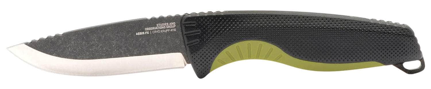 S.O.G SOG17410441 Aegis FX 3.70" Fixed Drop Point Plain Stonewashed 4116 Krupp SS Blade Black w/Moss Green Accents GRN Handle, Includes Sheath