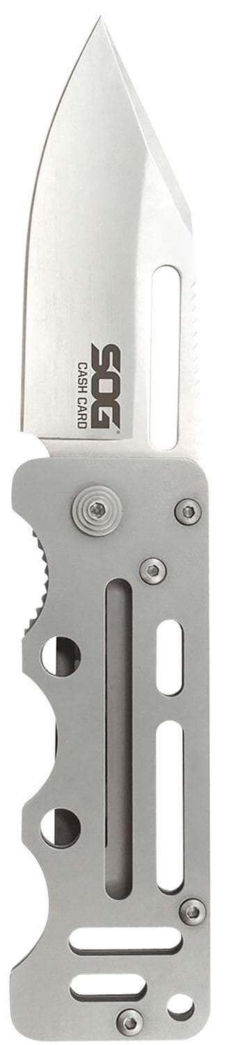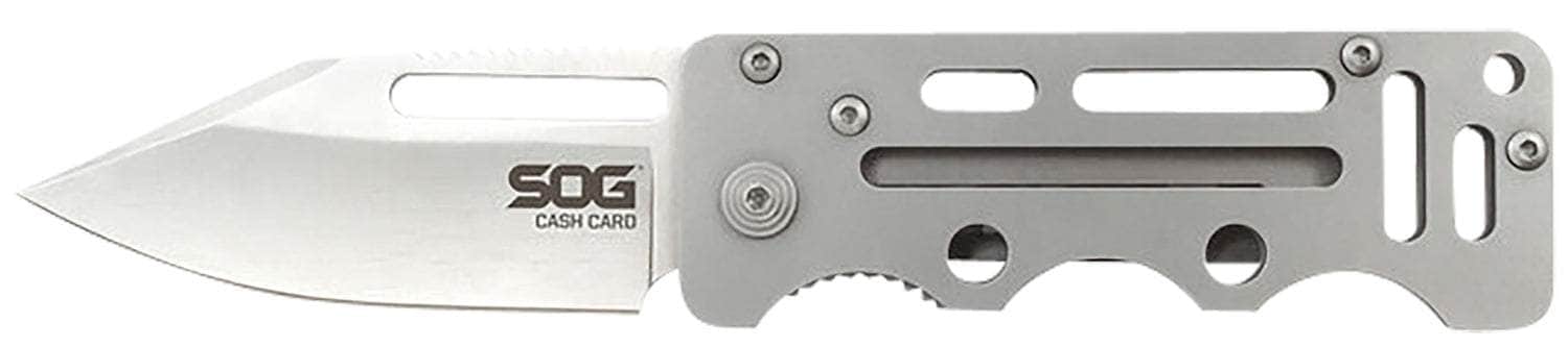 S.O.G SOG-EZ1-CP Cash Card 2.75" Folding Clip Point Satin 8Cr13MoV SS Blade/ Silver Skeletonized Stainless Steel Handle