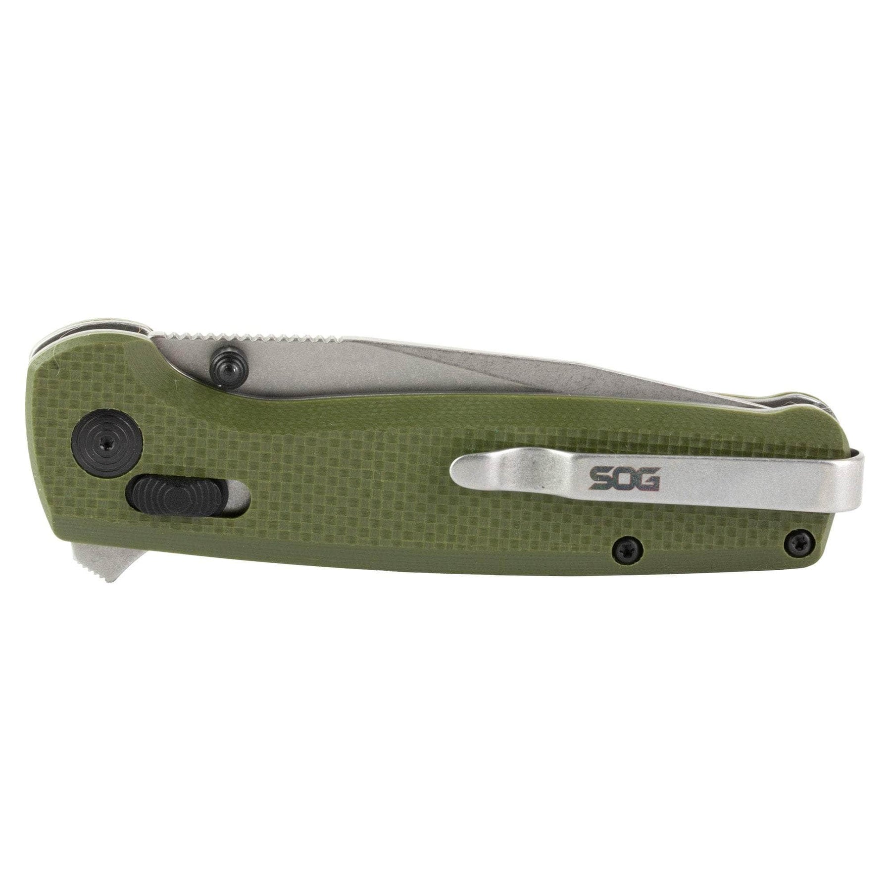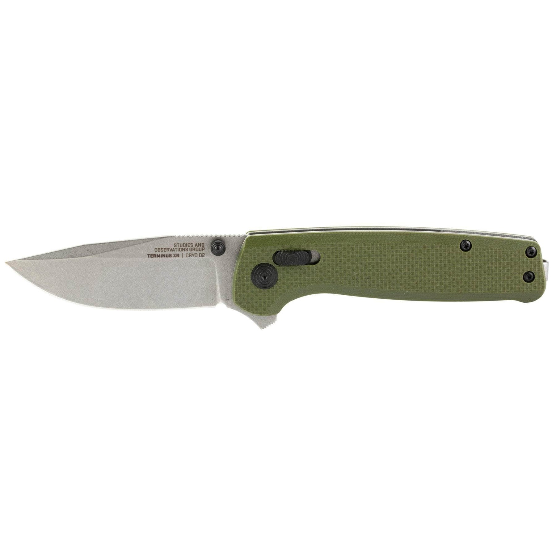 SOG Knives & Tools Terminus XR, Folding Knife, 2.95 Straight Clip Point, Olive Drab Green G10 Handle, D2 Steel, Stonewashed Finish, Silver SOG-TM1022-CP