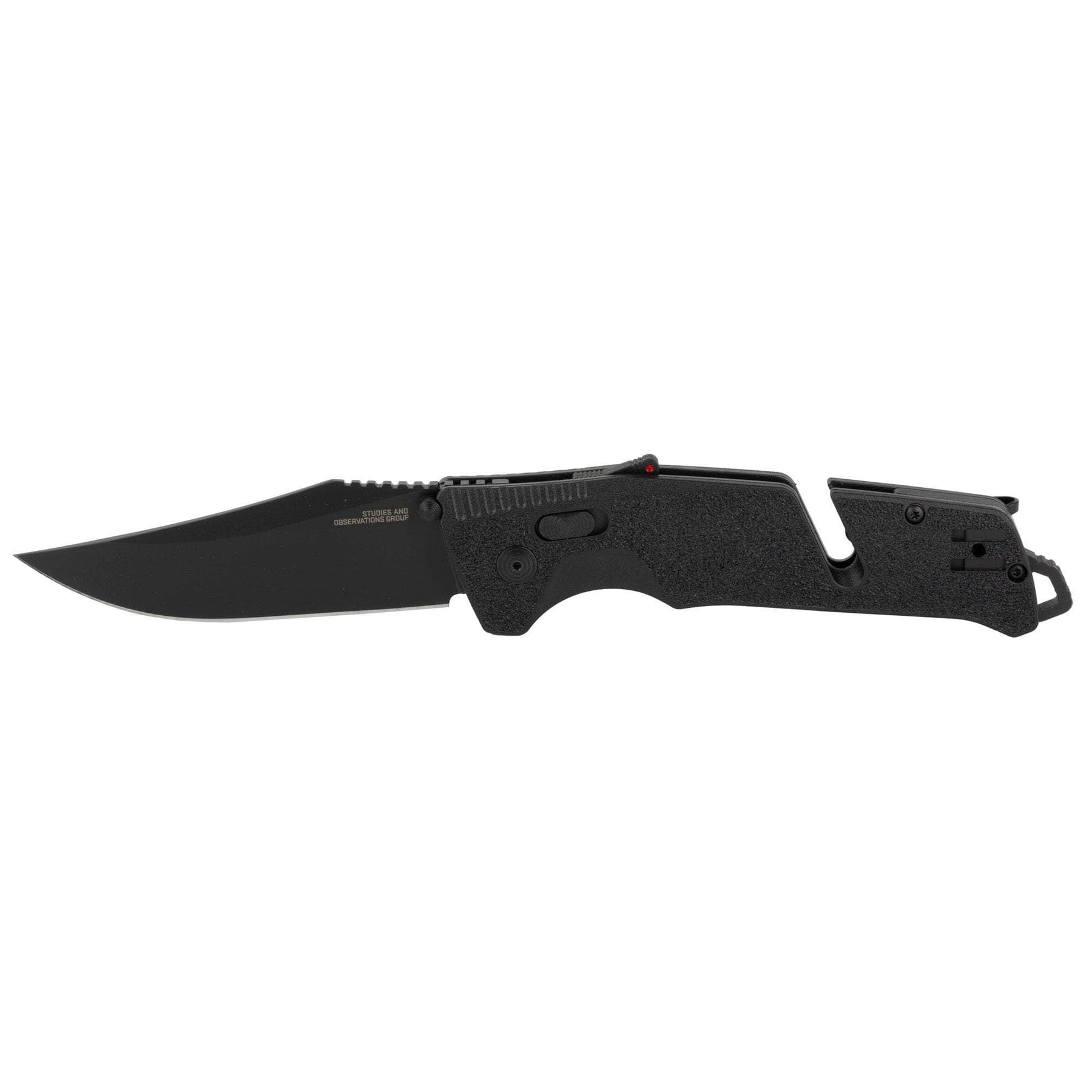 SOG Knives & Tools Trident AT, Folding Knife, 3.7 Straight Clip Point, Black Handle, D2 Steel, Titanium Nitride Finish, Black SOG-11-12-05-41