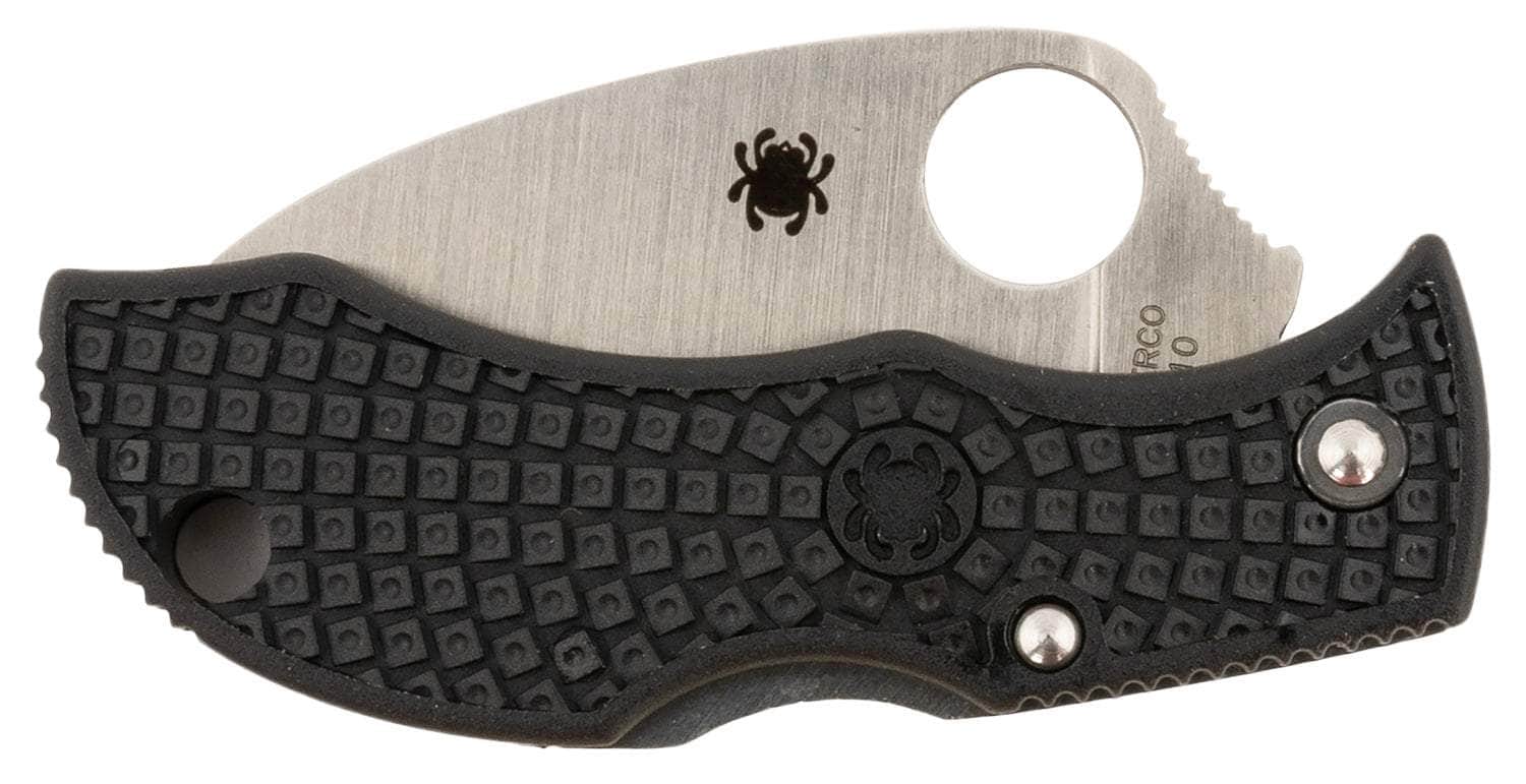 Spyderco MBKWSB Manbug 1.91" Folding Wharncliffe Serrated Non-Reflective Black TiCN VG-10 SS Blade, Black Textured FRN Handle