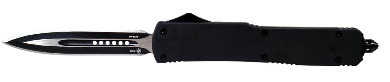 Templar Knife MBR131 Gen II Slim 3.50" OTF Dagger Plain Black Oxide Stonewashed 440C SS Blade, 5.05" Black Aluminum//Rubber Handle, Glass Breaker