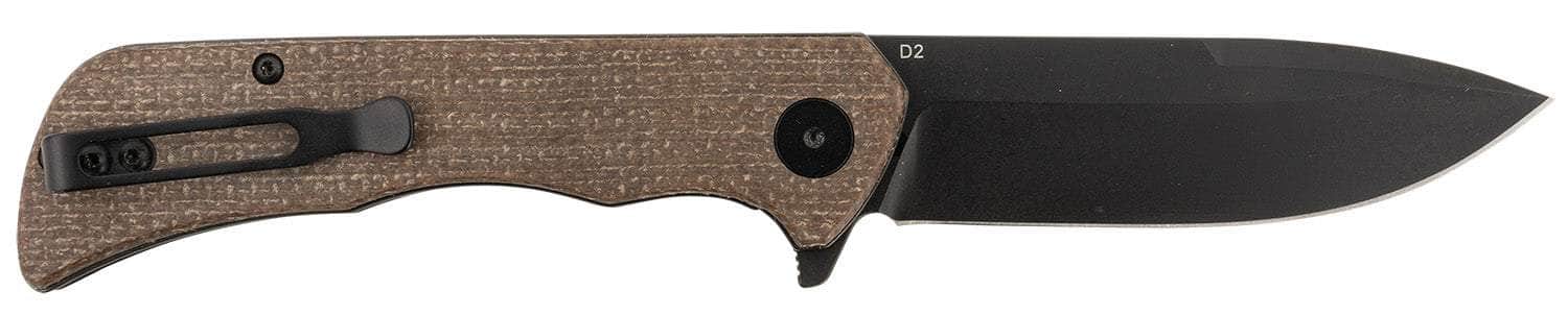 Templar Knife PFMBN321 Paladin 3.27" Folding Drop Point Plain Black Powder Coated D2 Steel Blade, 4.40" Brown Micarta Handle