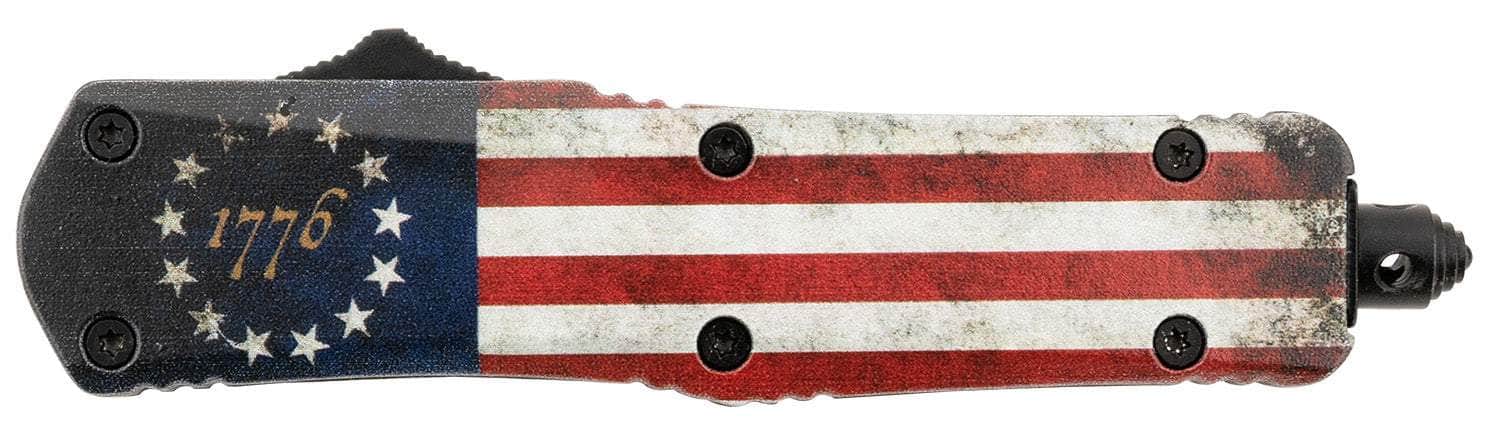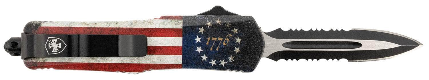 Templar Knife SBRF431 Gen II Betsy Ross Flag Small 2.75" OTF Dagger Part Serrated 440C SS Blade, 4.25" Betsy Ross Flag Aluminum Handle, Glass Breaker