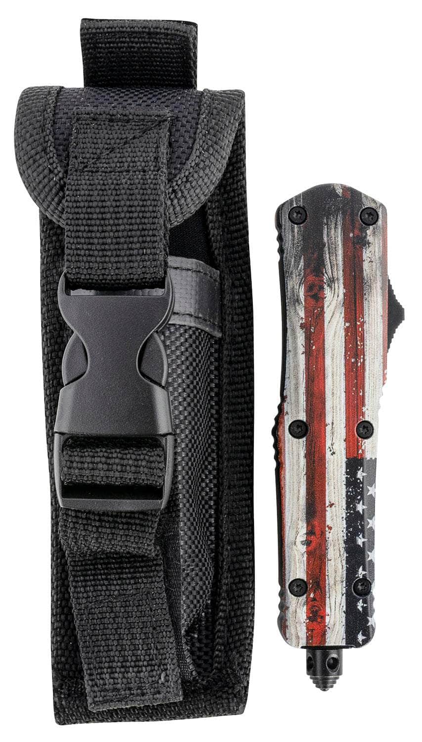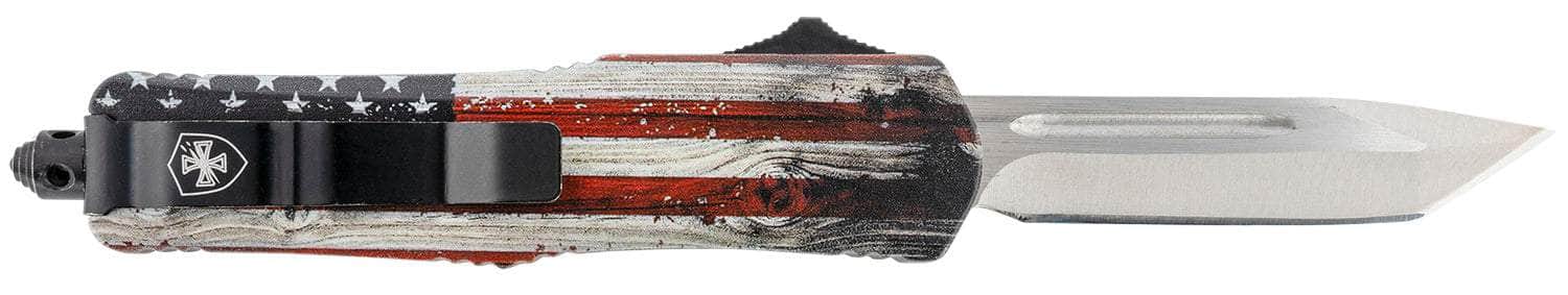 Templar Knife SWUS232 Gen II Wood US Flag Small 2.69" OTF Tanto Plain Powder Coated 440C SS Blade, 4.31" Painted Wood Grain US Flag Aluminum Handle, Glass Breaker