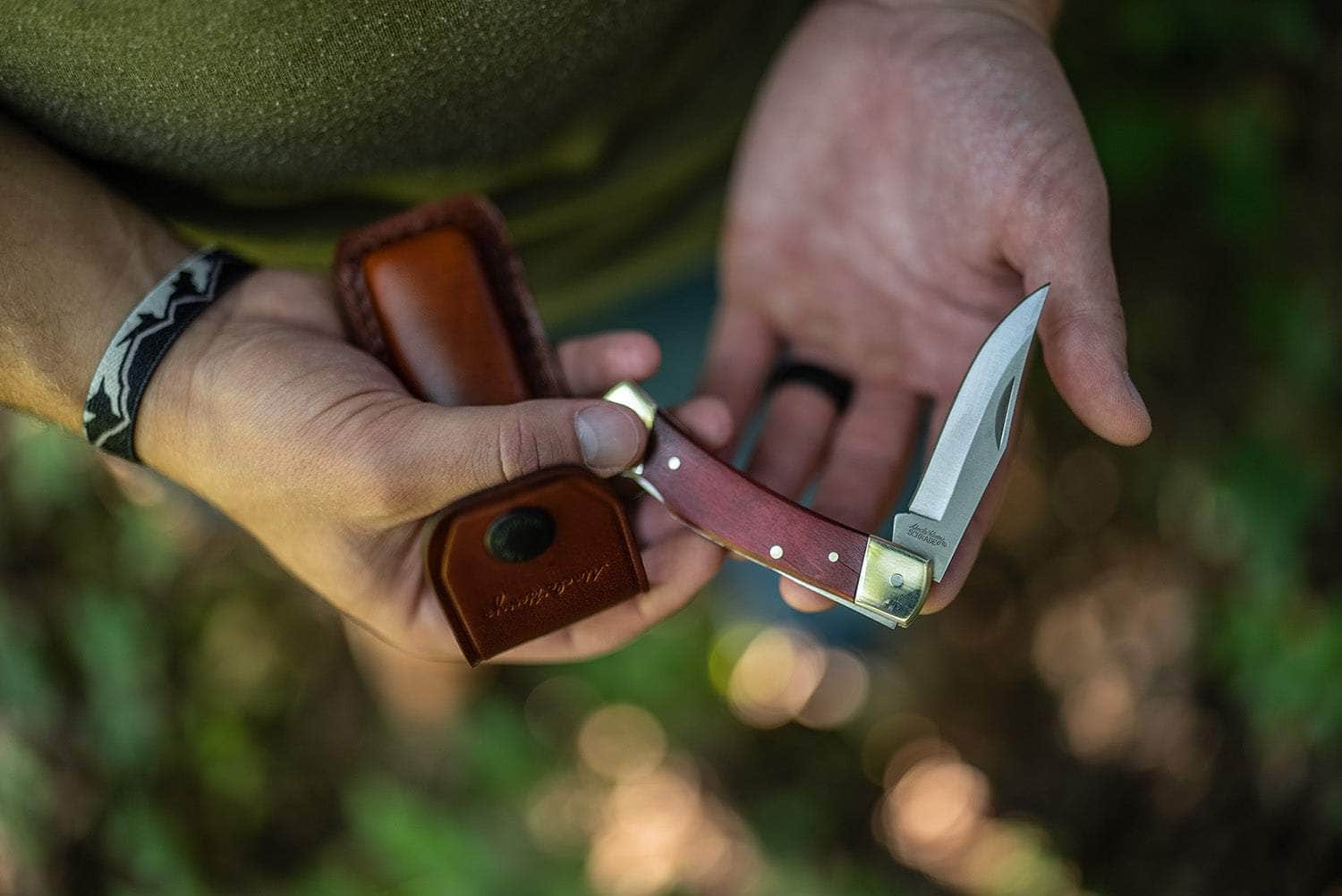 Uncle Henry LB5CP LB5 Smokey II Folding Clip Point Plain Stainless Steel Blade 3.70" Wood Handle Includes Sheath