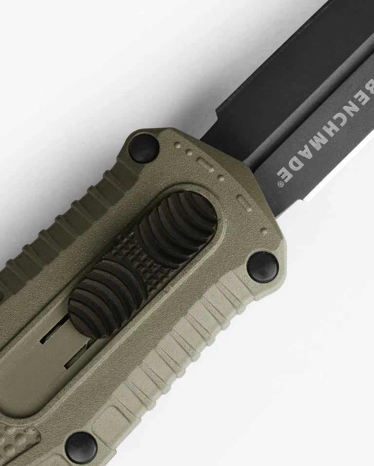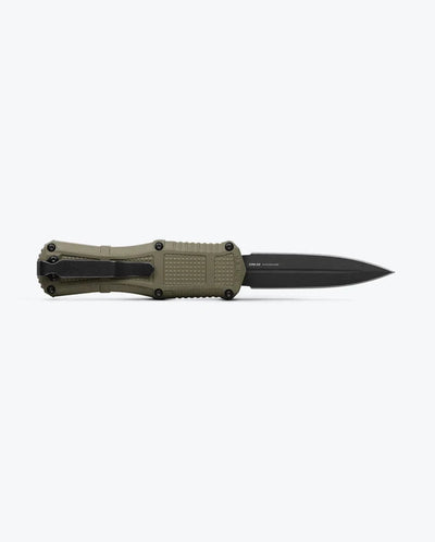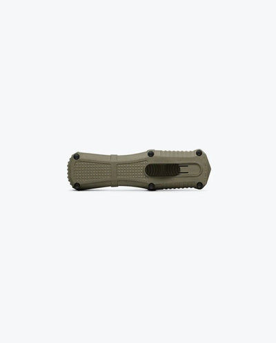 The powerhouse variant that punches well beyond its weight class, the new Mini Claymore double-action, out-the-front automatic is a lightweight alternative to the heavier autos. Featuring a compact 3.10” double-edged dagger blade made of tough CPM-D2 steel, the lightweight Grivory handle carries superbly in any pocket, doubling as a tactical EDC for daily cutting tasks — or as your pint-sized bodyguard for protection.